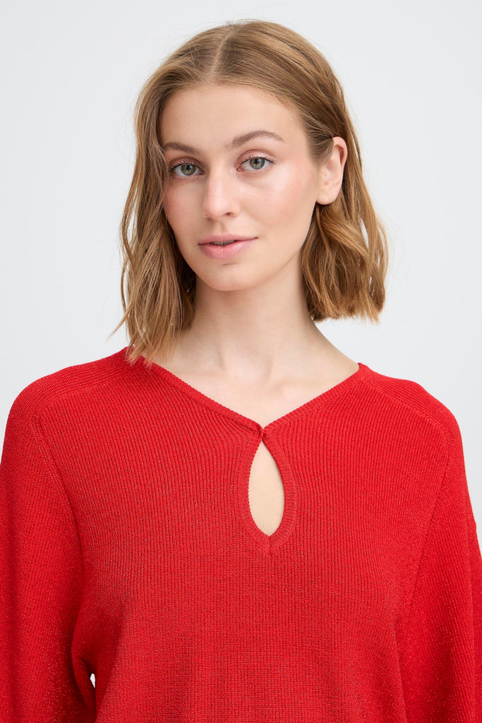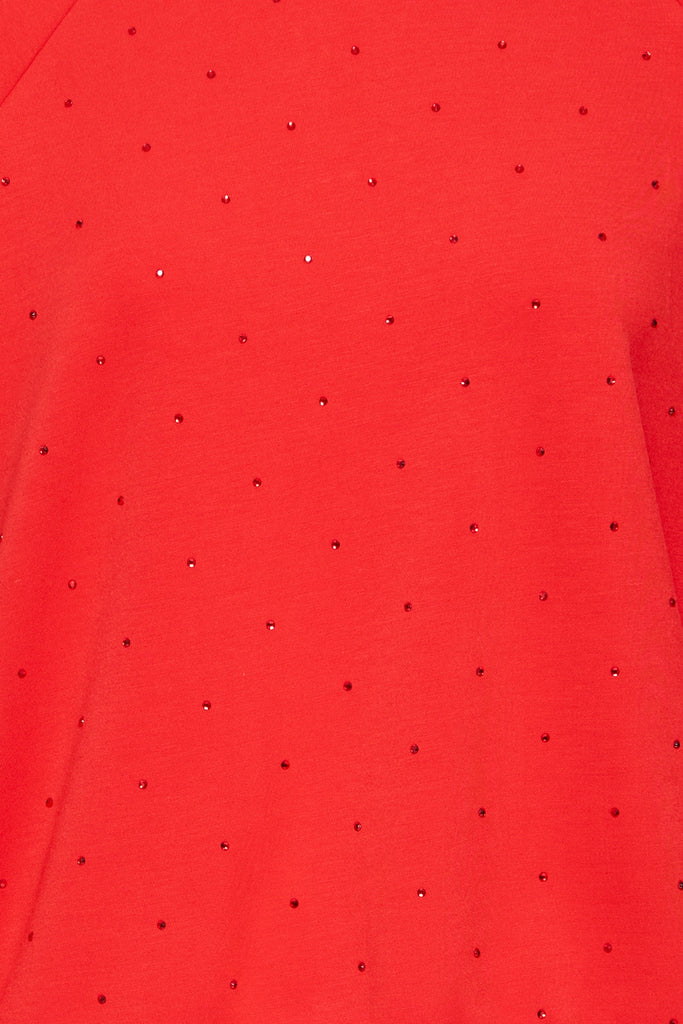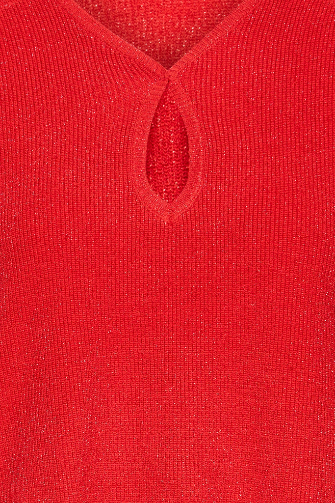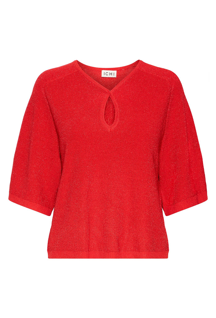 Rode gebreide top met een een rode glitterdraad, aan beide kanten draagbaar, stretchstof, losvallend model en halve mouwen